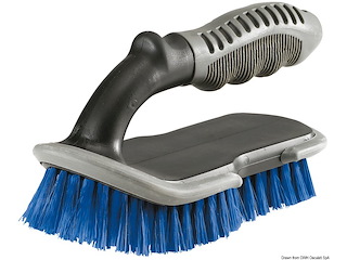 Spazzola con maniglia con setole resistenti ai solventi di lavaggio. Paracolpi morbido perimetrale e maniglia atta a esercitare una elevata pressione.