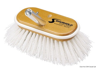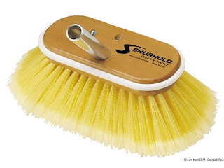 Puo’ essere usato con la mano, oppure con qualsiasi manico a scatto SHURHOLD. Ergonomico, con parabordo incorporato. Adatto sia per la carena che per il ponte.