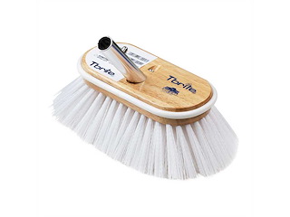 Spazzolone in legno verniciato con setole di alta qualità e paraurti in gomma antiurto di protezione. Innesto rapido a scatto quick-release . Dimensione spazzola 240 x 155 x 85 mm. Larghezza solo supporto il legno 180 mm. Spazzola colore bianca setole dure.
