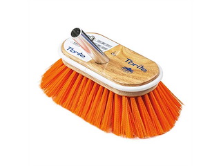 Spazzolone in legno verniciato con setole di alta qualità e paraurti in gomma antiurto di protezione. Innesto rapido a scatto quick-release . Dimensione spazzola 240 x 155 x 85 mm. Larghezza solo supporto il legno 180 mm. Spazzola colore arancio setole medie.