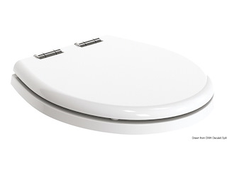 Coprisedili adatti alle diverse generazioni di wc elettrici Tecma, colore bianco, provvisti di sistema di chiusura frizionata.Sono disponibili in due versioni:A) con anima in legno ricoperta di poliestere e cerniere in acciaio inox;B) in plastica termoindurente (versione leggera che nasconde il sedile).