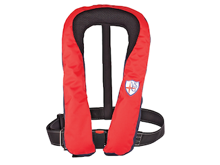 Giubbotto di salvataggio autogonfiabile automatico della Veleria San Giorgio modello Skipper 150. Costruito in ottemperanza alla nuova normativa UNI EN ISO 12402-3 Adatto alla navigazione di navi, imbarcazioni e natanti da diporto adibite anche a noleggio