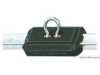 Bozzello 1 puleggia, attacco universale + arricavo e strozzascotte VIADANA. Versione "B": per cime da 10 mm. ; Ø puleggia 45 mm. ; carico di rottura 950 Kg. ; carico di lavoro 370 Kg. .
