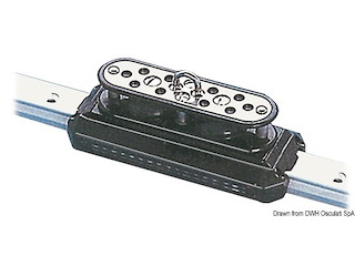 Bozzello 2 pulegge a violino con strozzascotte con strozzascotte in carbonio per cima Ø max 8 mm. VIADANA. Versione "A": per cime da 10 mm. ; Ø puleggia 38 mm. ; carico di rottura 600 Kg. ; carico di lavoro 230 Kg. .