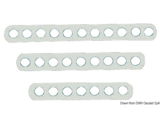 Landa forata in acciaio inox AISI 316. Dimensioni: Larg 14 mm. , Spess 2 mm. , Ø fori 6 mm. Lungh 80 mm.