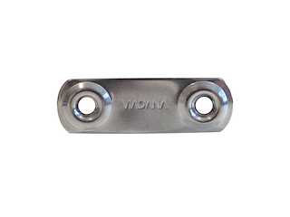 Ponticello in lastra acciaio inox, 4 fori di fissaggio. Dim. mm. 65x14