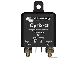 Si tratta di un relay potente che tramite un microprocessore collega automaticamente in parallelo le batterie quando una di esse ha raggiunto il voltaggio predeterminato e le separa quando il voltaggio scende sotto il livello FLOATING. I Cryrix-I sono un ottima alternativa ai separatori a diodi in quanto non c'è caduta di tensione.Il montaggio classico prevede l'alternatore collegato direttamente alla batteria avviamento. Batteria servizi, ed elica di prua sono abbinate alla batte
