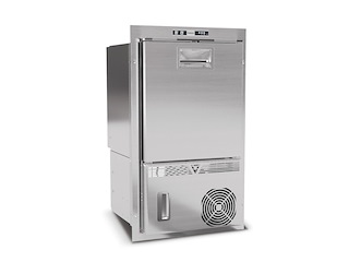 Fabbricatori di ghiaccio Hydro allaccio rete idrica realizzati in acciaio inox AISI 316, progettati per essere collegati direttamente all’allaccio dell’acqua dell’imbarcazione. Completi del nuovo sistema di chiusura avanzato Steelock impedisce aperture accidentali del dispositivo. Inoltre, il sistema Vent Position previene la formazione di muffa e odori sgradevoli durante i periodi di inattività. Mantenimento del ghiaccio. Con porta reversibile e termostato a Led. Senza scarico condensa.