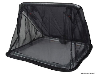 Fabbricato in rete ecologica colore scuro per favorire la privacy. Parte bassa appesantita con piccoli piombi che la rendono stabile.Fissaggio rapidissimo . Modello universale.