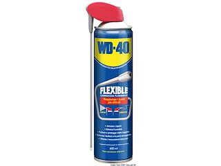 Prodotto spray multiuso idrorepellente, lubrificante, protettivo e detergente. Protegge dall’umidità formando una pellicola contro l’acqua e la salsedine. Protegge tutte le parti metalliche dalla corrosione marina, lubrifica i meccanismi di accensione eliminando i cigolii sulla barca e fungendo da ottimo sbloccante. Elimina la salsedine dalle catene e protegge dagli effetti corrosivi.