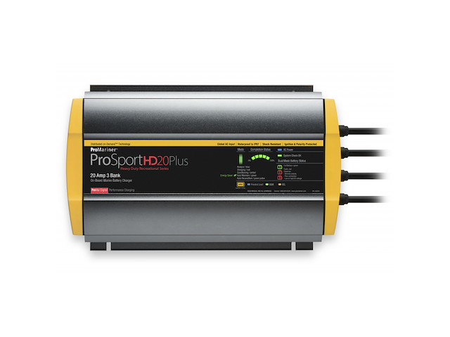 ProSport HD per batterie al litio vanta un nuovo dissipatore di calore a tre superfici. Questo design leggero garantisce una ricarica più rapida, grazie a un raffreddamento ottimale, e fornisce allo stesso tempo una corrente nominale costante in ampere durante la carica. Profili di carica selezionabili dall’utente per le batterie Flooded, AGM, Gel e batterie ProMariner LiFePO4 approvate (litio). Il microprocessore potenziato e il software di controllo di ProSportHD presentano un cruscotto di nuo