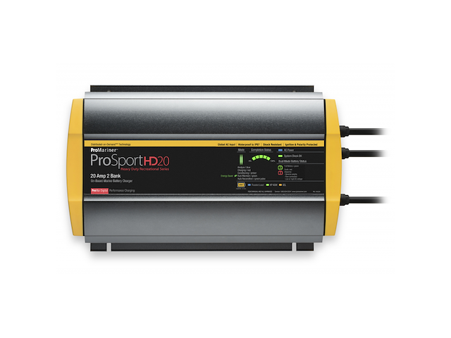 ProSport HD per batterie al litio vanta un nuovo dissipatore di calore a tre superfici. Questo design leggero garantisce una ricarica più rapida, grazie a un raffreddamento ottimale, e fornisce allo stesso tempo una corrente nominale costante in ampere durante la carica. Profili di carica selezionabili dall’utente per le batterie Flooded, AGM, Gel e batterie ProMariner LiFePO4 approvate (litio). Il microprocessore potenziato e il software di controllo di ProSportHD presentano un cruscotto di nuo