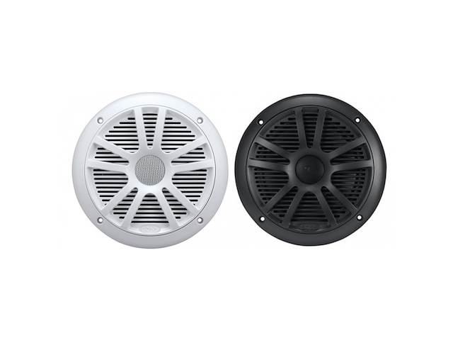 Coppia altoparlanti MR6 in ABS bianco, coassiali a 2 vie, potenza max 180W, impedenza 4 Ohm,risposta frequenza 80Hz-20Khz. Dim. Ø est. mm. 196, Ø foro mm. 139, prof. mm. 66.