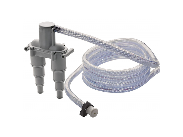 Antisifone in materiale plastico con bocchettone di scarico e mt. 4 di tubo.Quando il punto di ingresso dell’acqua di raffreddamento nello scarico si trova ad un’altezza inferiore a cm 15 sopra la linea di galleggiamento, c’è pericolo che, spegnendo il motore, l’acqua di raffreddamento entri nel motore a causa dell’effetto sifone. Si posiziona almeno cm. 40 sopra la linea di galleggiamento. Portagomma universale Ø mm. 13-19-25-32.