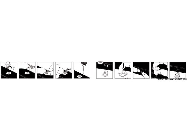 Bottoni in acciaio inox AISI 316.Il maschio presenta un dente di aggancio per la femmina, che a sua volta ha uno specifico labbro di ritegno. Le due novità combinate permettono di tendere al meglio il telo e nello stesso tempo ne evitano lo sgancio accidentale.