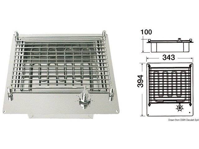 Totalmente in acciaio inox AISI 316, completo di raccogli sughi estraibile, resistenza elettrica basculante, griglia amovibile e fissata con speciali ganci anti-vibrazione.