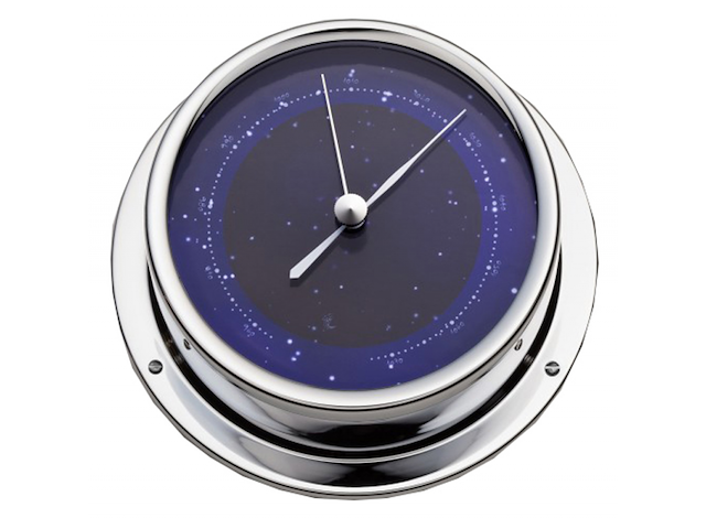 Strumento di bordo in ottone cromato con quadrante blu