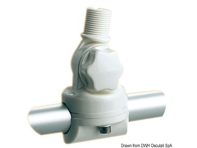 In nylon, con bloccaggio a pomello, per montaggio su tubi corrimano Ø mm 22/25. universale per antenne VHF/GPS.