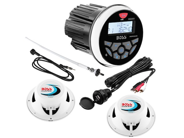 Boss Audio Marine Stereo 240 W MGR350B - Antenna FM - Coppia casse 150W - Cavo USB/RCA SPECIFICHE ARTICOLO Codice produttore: MGR350BbunFULL Codice EAN: GARANZIA RIVENDITORE AUTORIZZATO GARANZIA 24 MESI DESCRIZIONE BUNDLE Stereo da cruscotto Boss Audio Marine MGR350B - 60 Watts x 4 - No CD / DVD Il nuovissimo stereo da cruscotto Boss Marine MGR350B è uno stereo da barca circolare e compatto che ricalca le linee estetiche degli strumenti presenti in pla