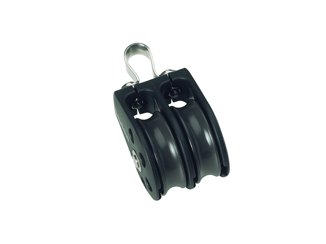 SERIE 3 - Bozzello con puleggia, Ø cima max mm. 10, max carico di lavoro kg. 400, carico di rottura kg. 800, dimensioni puleggia mm. 45 x 13, lunghezza mm. 80