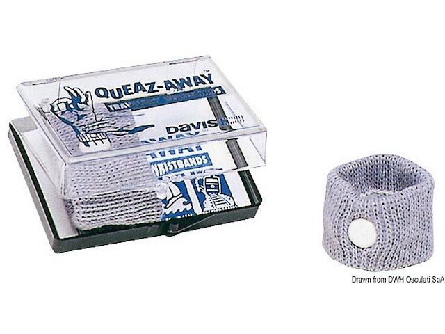 Coppia di braccialetti elastici che combattono efficacemente la nausea, senza essere un medicinale e senza avere effetti collaterali. Esercitano una pressione sul punto P6, o Nei Guan, dell'agopuntura, punto correlato al centro del vomito, che viene così inibito.