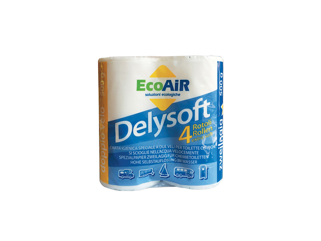 Carta igienicaspeciale a due veli, si scioglie nell’acqua senza intasare gli scarichi del WC.Per toilette portatili e fisse. Confezione da 4 rotoli.