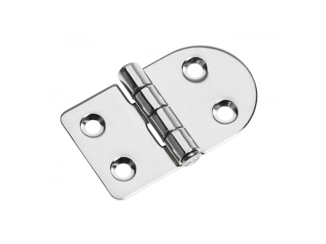 Cerniere in acciaio inox AISI 316 lucidate a specchio, spessore mm. 2, perno Ø mm. 9 intestato.
