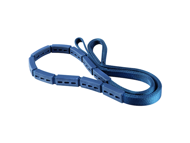 Cinghia ormeggio brevettata carico di rottura kg.11800 superiore alla catena Ø mm 14. Completa di inserti antiabrasione. E’ pulita e sicura, evita danni alla barca in caso di urto, non porta ruggine a bordo, non crea correnti galvaniche , corrosione alle molle di ormeggio, ed evita il danneggiamento per attrito delle bitte e/o degli anelli del porto. Colore blu navy.