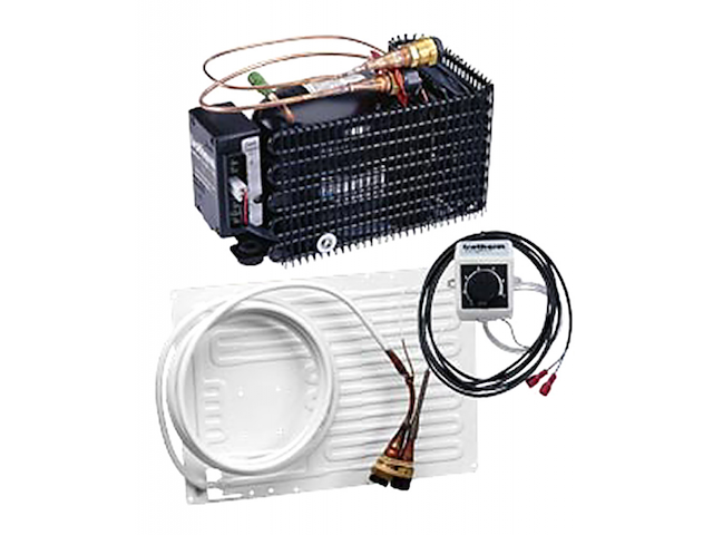 Unità refrigeranti COMPACT ad aria GE per trasformare gavoni ben isolati in frigoriferi. Compressore ermetico BD35F Secop (ex Danfoss) elettronico regolato da un termostato specifico, raffreda l’evaporatore di tipo flat installato all’interno del gavone. Alimentazione 12/24V. Sono già carichi di gas e provvisti di giunti rapidi di collegamento.