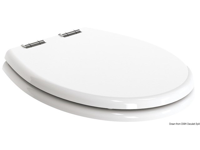 Coprisedili adatti alle diverse generazioni di wc elettrici Tecma, colore bianco, provvisti di sistema di chiusura frizionata.Sono disponibili in due versioni:A) con anima in legno ricoperta di poliestere e cerniere in acciaio inox;B) in plastica termoindurente (versione leggera che nasconde il sedile).