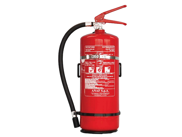 Estintore in acciaio per uso navale imbarcazioni da lavoro, pesca e mercantili, completo di supporto. Certificati MED 2014/90/EU, CE 0029, EN3, P.E.D. 2014/68/EU.