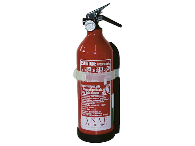 Estintore a polvere in alluminiocompleto di supporto. Certificati R.I.Na., MED 2014/90/EU, EN3, CE 0029/2017, P.E.D. 2014/68/EU. Sono classificati secondo la loro capacità di spegnere differenti tipi di fuoco. Un coefficiente indica la capacità di estinguere e una lettera il tipo di fuoco che può essere spento. A - Fuoco di materie secche (carta, legno, tessili, ecc.) B - Fuoco di liquidi(idrocarburi) C - Fuoco di gas (butano - propano). Dimensioni Ø mm 82 x h mm. 295