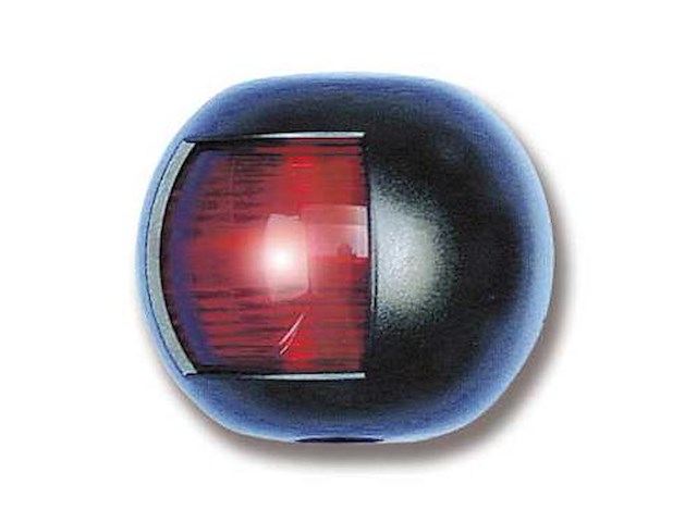 Corpo colore nero. Classe di protezione I.P. 56. Completi di lampadina da 12V. Montaggio a parete e chiusura a scatto. Omologazione Italia (RINA). Omologati secondo le norme internazionali IMO/COLREG 72-ABYC A16. Colore Rosso Adatto per Sinistra Gradi 112,5°