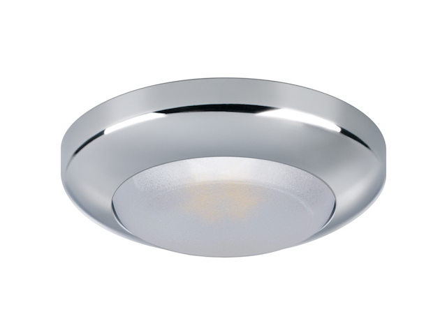 Faretto stagno IP 40 a 6 led ( 133 Lumen ), luce bianca calda con cornice quadrata in plastica cromata. Installazione a soffitto o parete.Sensibile alla polarità. Fissaggio con viti (non incluse).
