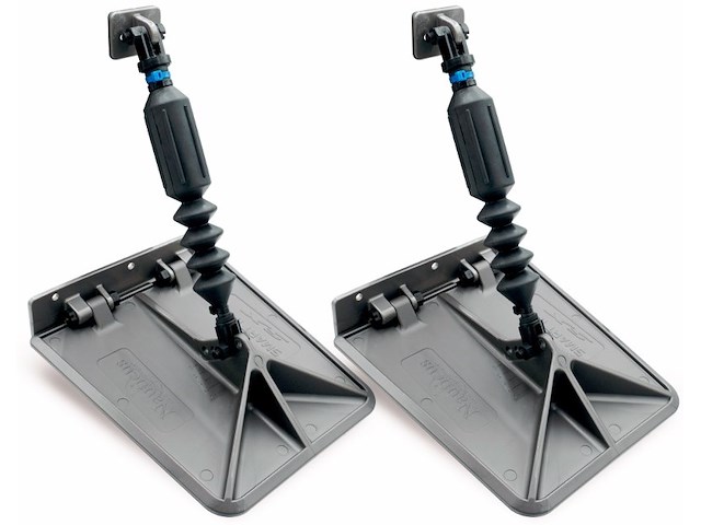 Flaps Nauticus automatici con Spinta 80 Lb. Adatto a barche o gommoni con le seguenti caratteristichie : - Lunghezza:4,6/4,9/5,2 mt con Motore 60-100HP 4 tempi - Lunghezza: 4,9/5,2/5,5 mt con Motore 60-150HP 2 tempi - Lunghezza: 5,5/6,7 mt con Motore 150-240HP 2 o 4 tempi - Lunghezza: 4,9/5,2/5,5 mt con Motore 4/6 cilindri Entro/Fuoribordo - Lunghezza: 5,5/6,7 mt con Motore v8 cilindri Entro/Fuoribordo Caratteristiche Principali: - Dimesioni pale : 24,10 x 25,40 cm. - Autoregistranti - Semplice