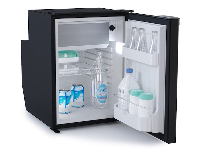 Frigorifero con unità interna Vitrfrigo C51. Capacità 51 litri ( Vano freezer 3,6 lt. ). Porta di colore nero. Flangia coprifilo non compresa. Nostro riferimento 8672. Alimentazione a 12/24 volt.