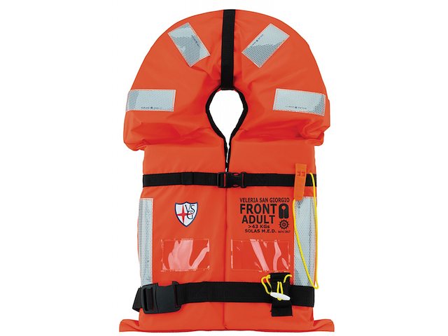 MK10 Giubbotto di salvataggio a stola SOLAS - M.E.D. - ISO 12402-3 ripiegabile per ridurre gli spazi di stivaggio, costruito con materiale galleggiante a cellule chiuse, con fischietto e fasce riflettenti.