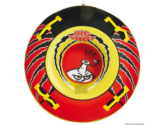 Maxi tubone, può trainare fino a 4 persone. Completo di 8 maniglie deluxe con rivestimento in neoprene. Fabbricati in PVC elettrosaldato + nylon cordura + protezione in neoprene. Provvisti di speciale valvola per gonfiaggio/sgonfiaggio rapido.
