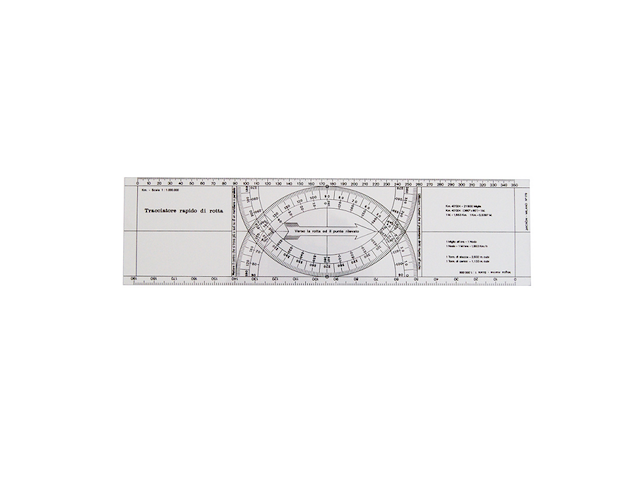 Permette di tracciare rilevamenti e rotte in base alla gradazione delle bussole e di determinare le distanze. Lunghezza mm 385.