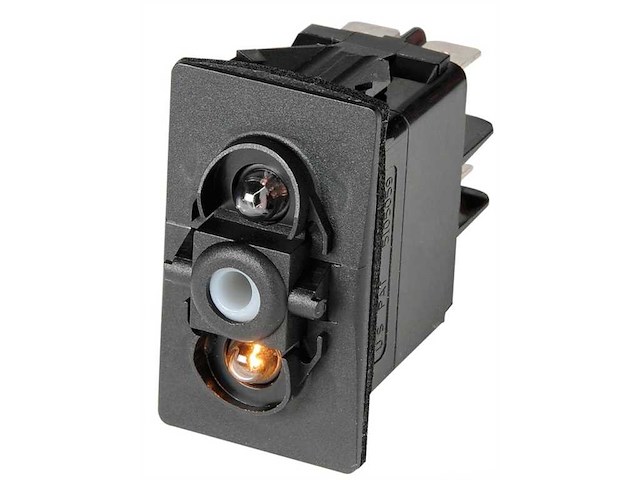 Interruttore: ON momentaneo - OFF - ON momentaneo. Led Rossi 24 Volt. Numero di terminali: 6 bipolare. Consigliato per flap, pompe idrauliche e salpancore.