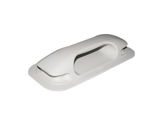 Può essere usata come base per un tienti beneo maniglia in corda. Si pratica un foro di diametroadeguato alla cima utilizzata, un nodo adinizio cima viene bloccato nell’apposito alloggiamentodella maniglia.Dim. mm. 240 x 105 x 45h