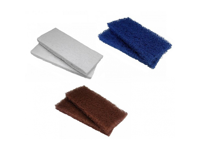 Cuscinetto abrasivo per la pulizia di ponti e superfici in vetroresina. Non indicato per superfici verniciate o lucidate. Dimensioni mm 250X115. Confezione 2 pezzi