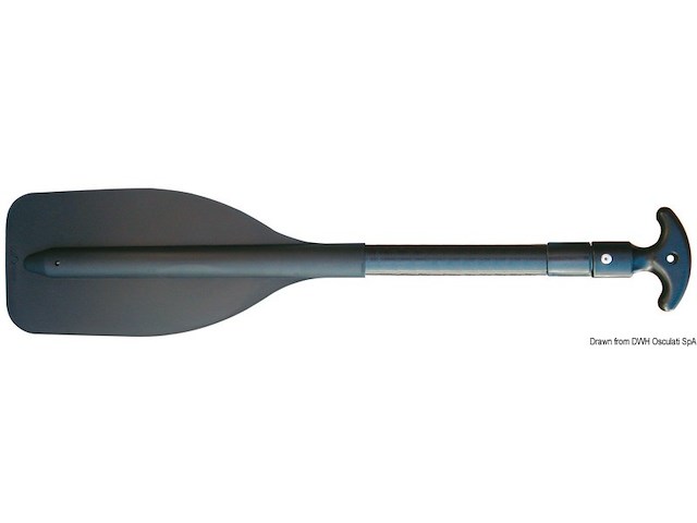 Pala ed impugnatura in plastica nera, tubo in alluminio anodizzato.