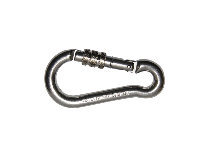 Moschettone in acciaio inox AISI 316. Modello con chiusura a vite, apertura interna. Chiusura Key-Lock. Dimensioni: Ø 10mm. Lunghezza 100mm.
