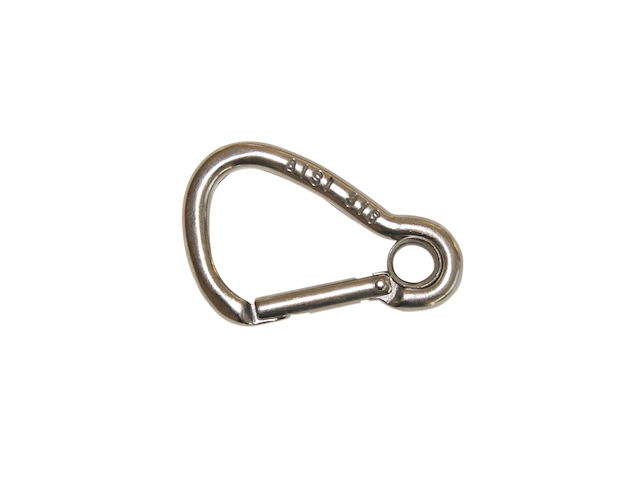 Moschettone in acciaio inox AISI 316. Modello di alta qualità, ampia apertura ed alto carico di rottura, con anello nell’occhio Ø 12 mm. Chiusura Key-Lock. Chiusura Key-Lock. Dimensioni: Ø mm.10 Lunghezza mm.100 Carico di rottura 2200Kg.