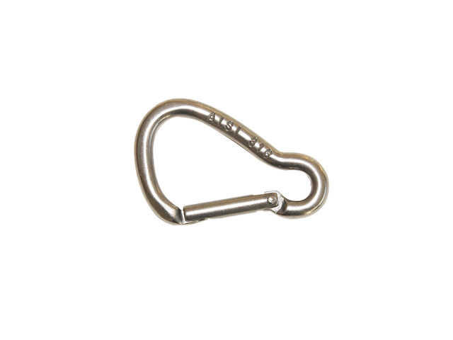 Moschettone in acciaio inox AISI 316. Modello di alta qualità, ampia apertura ed alto carico di rottura. Chiusura Key-Lock. Dimensioni: Ø6mm. Lunghezza 60mm. Carico di rottura 500Kg.