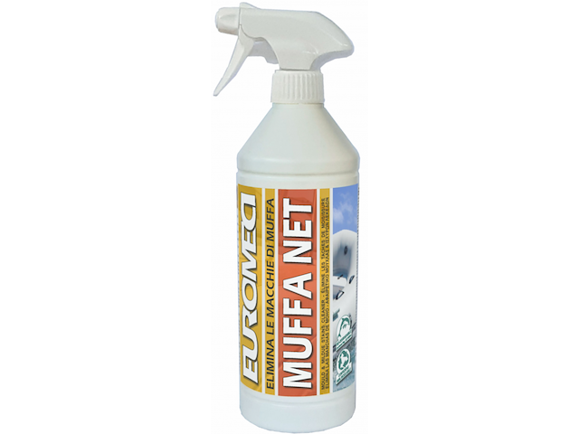 Muffa Net elimina macchie di muffa dalle cuscinerie in similpelle, dai gommoni e dalla vetroresina. Si spruzza sulle macchie e si risciacqua appena queste sono sparite. Flacone con spruzzatore. Flacone lt. 0,75. Confezione 12 pz