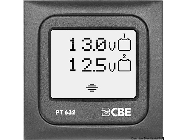 Pannello digitale touchscreen per il controllo di 2 batterie a 12 V.