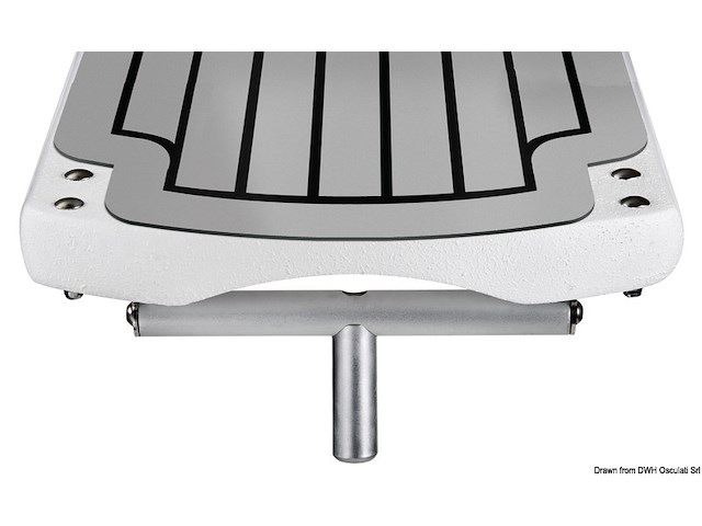 Struttura realizzata in carbonio a più strati e con profili d'alluminio di supporto. Cerniere in alluminio anodizzato.Ruote con carcassa inox, con anelli che permettono il sollevamento della passerella. Provvista di doppio perno pivotante.Si può montare con un solo perno e la passerella può brandeggiare, oppure con due perni che consentono il solo movimento verticale (entrambi i perni sono inclusi).Disponibile in diverse configurazioni di piano di calpestio:superf