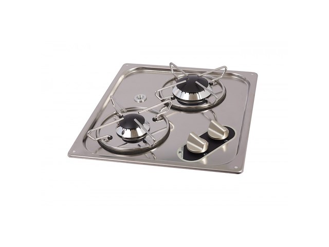 Piano cottura a gas con accensione manuale, in acciaio inox lucidato a specchio. Montaggio ad incasso. Con termocoppia di sicurezza. Completo di viti di fissaggio. Con foro per ferma pentole. Certificati CE.